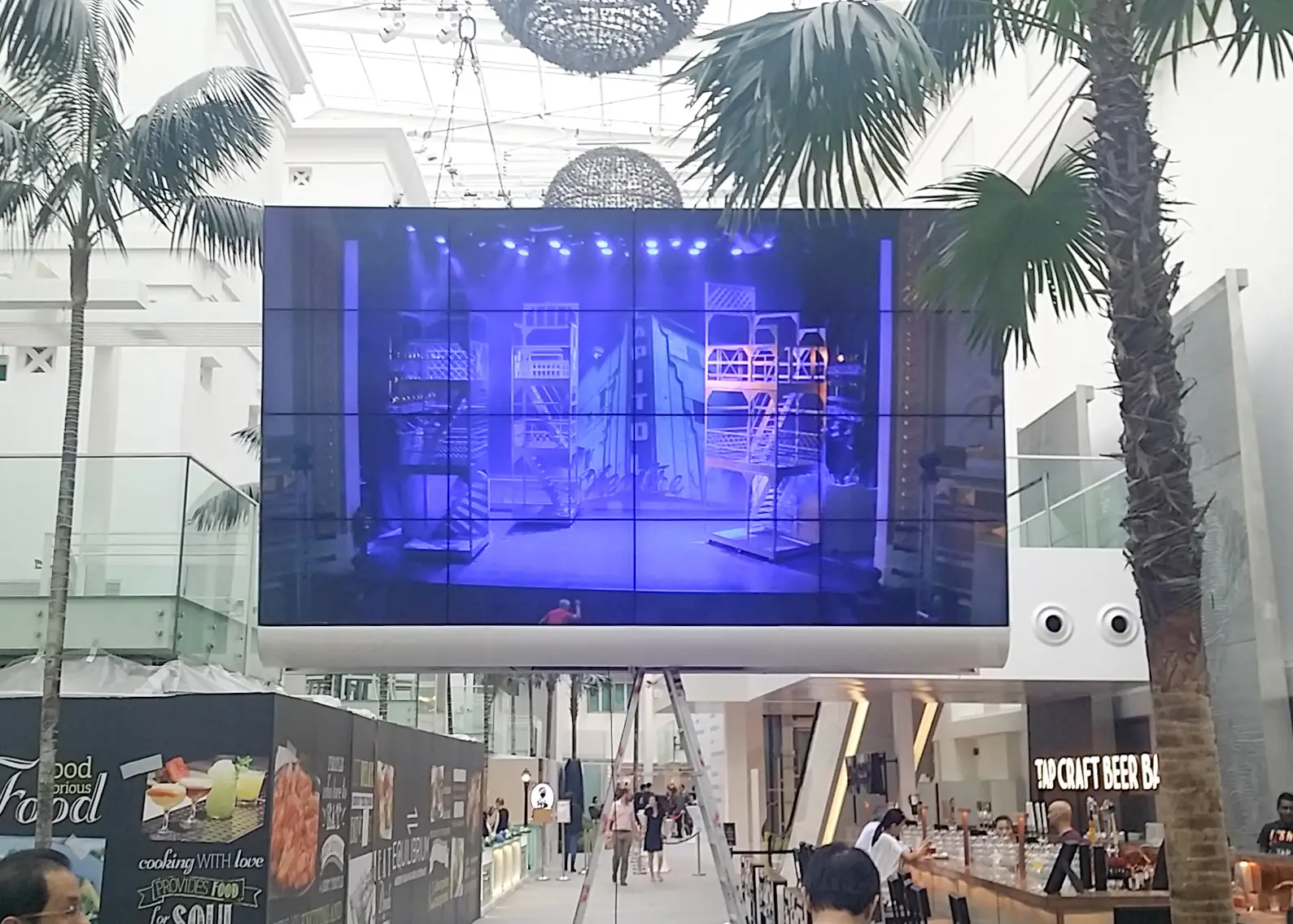Di mal-mal besar, layar melengkung digunakan untuk membungkus pilar atau diletakkan di atrium utama. Manfaatnya adalah iklan dapat terlihat dari berbagai arah, meningkatkan efektivitas pesan pemasaran secara signifikan.